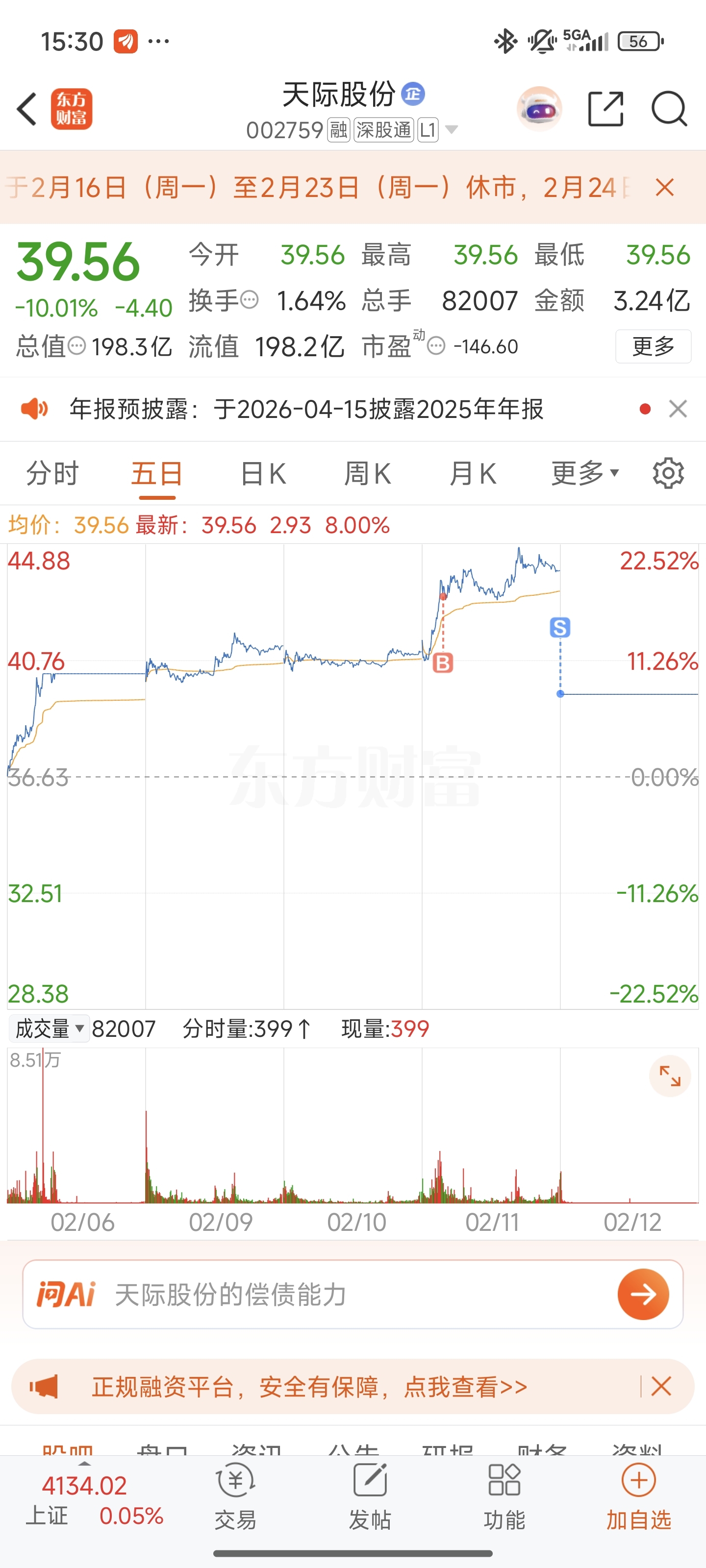 $天际股份(SZ002759)$ 昨天买的,终于跑出来了
