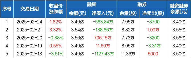 浙江建投:融资净偿还563.84万元,融资余额3.49亿元(02-24)