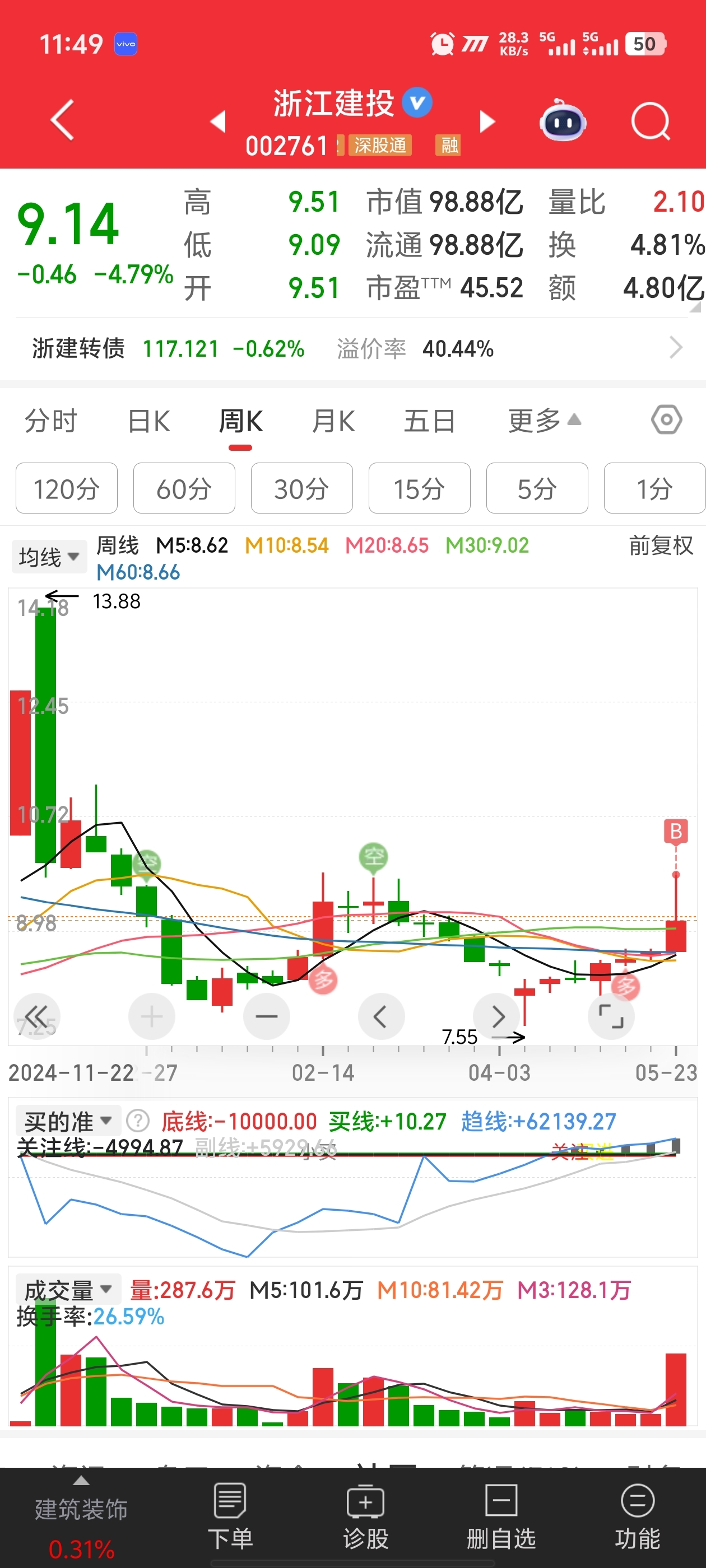 周线双底放量站上所有均线你们也看空目光太短视了吧,月线也是双底站上五日线十日线。