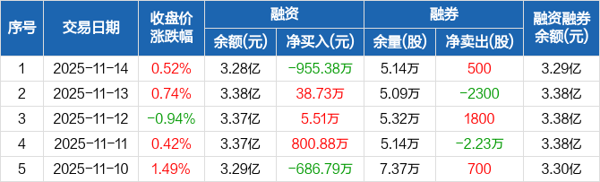 浙江建投:融资净偿还955.38万元,融资余额3.28亿元(11-14)