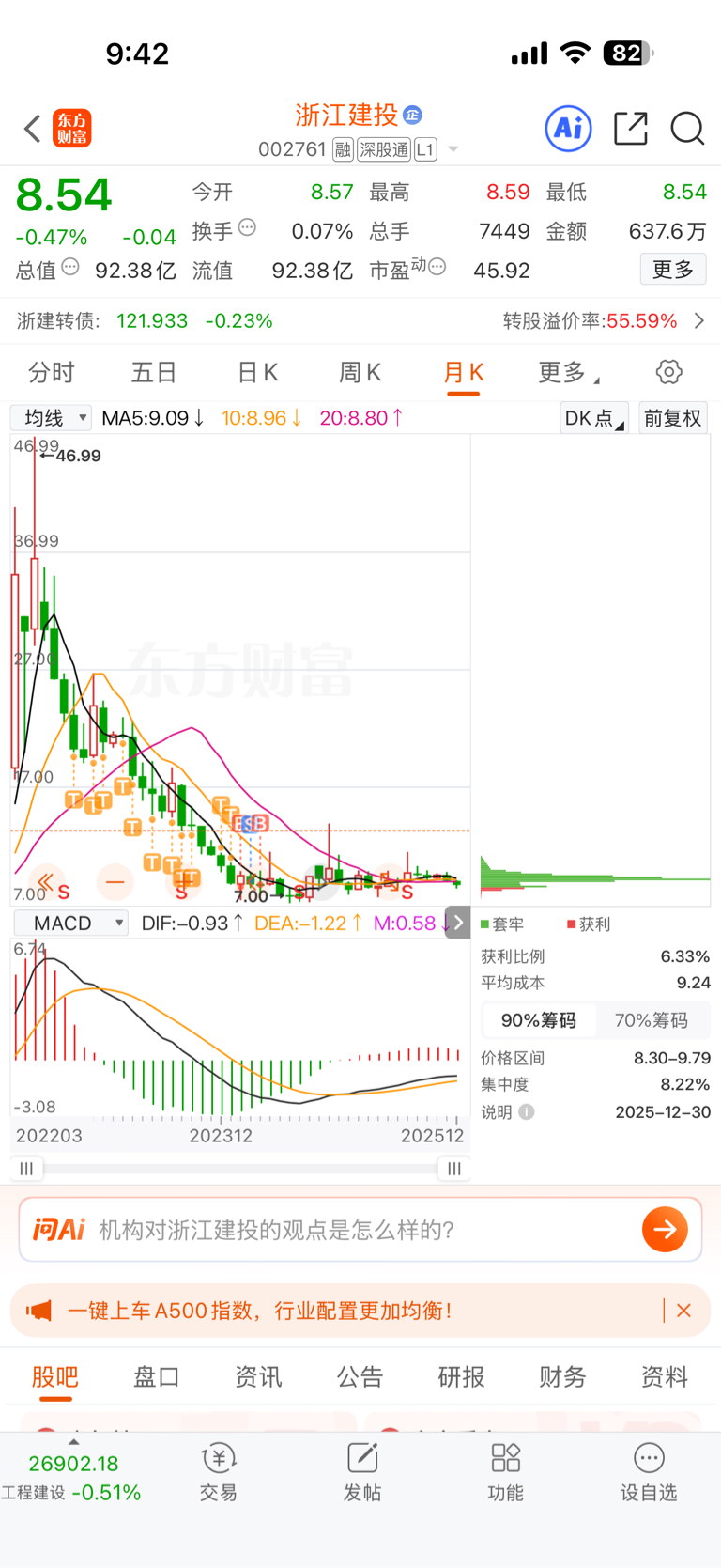 $浙江建投(SZ002761)$ 你说我怎么跑,往哪跑,跌60%