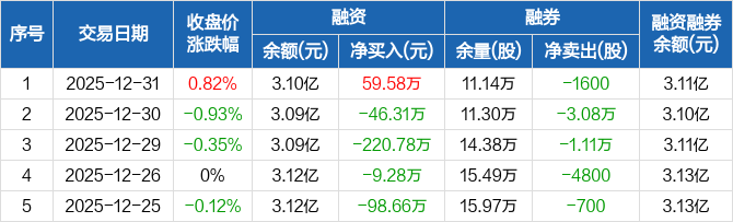 浙江建投:融资净买入59.58万元,融资余额3.1亿元(12-31)