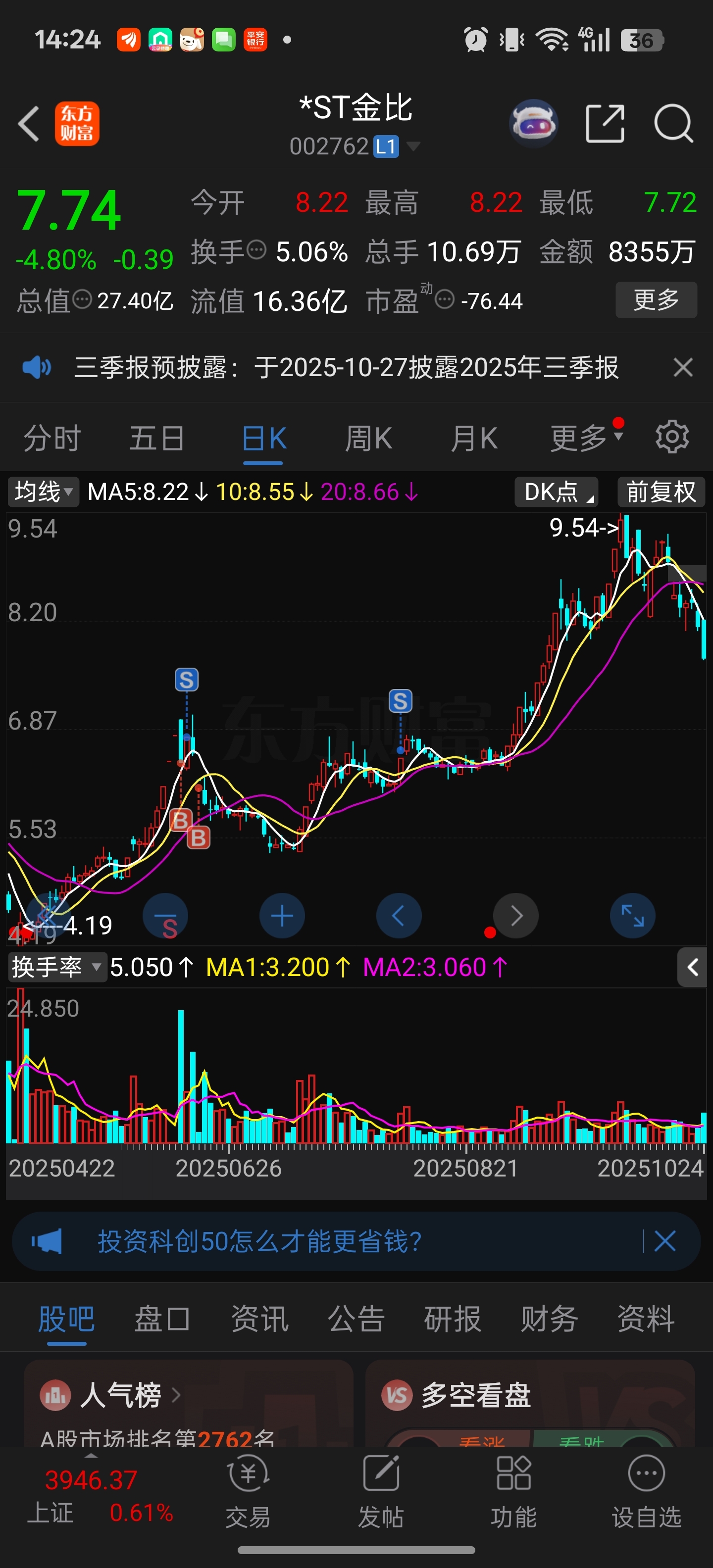 $*ST金比(SZ002762)$ 快下来,我还没上车呢
