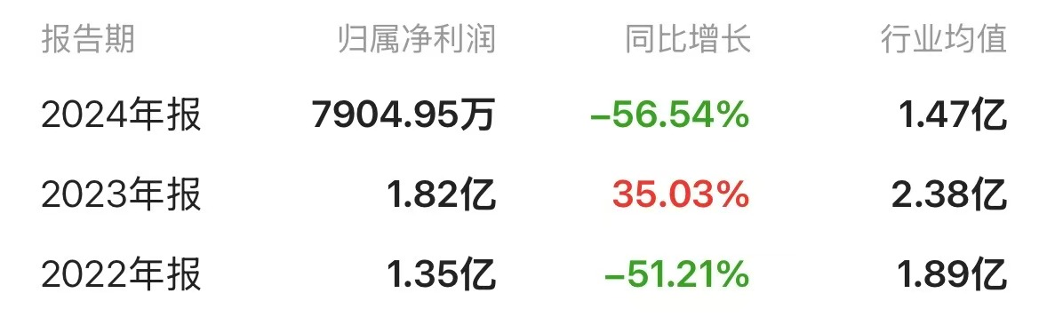 近几年,汇洁股份业绩呈现出一定程度的波动。2022年至2024年,公司归母净利润分别为1.35亿元、1.82亿元、7904.95万元。