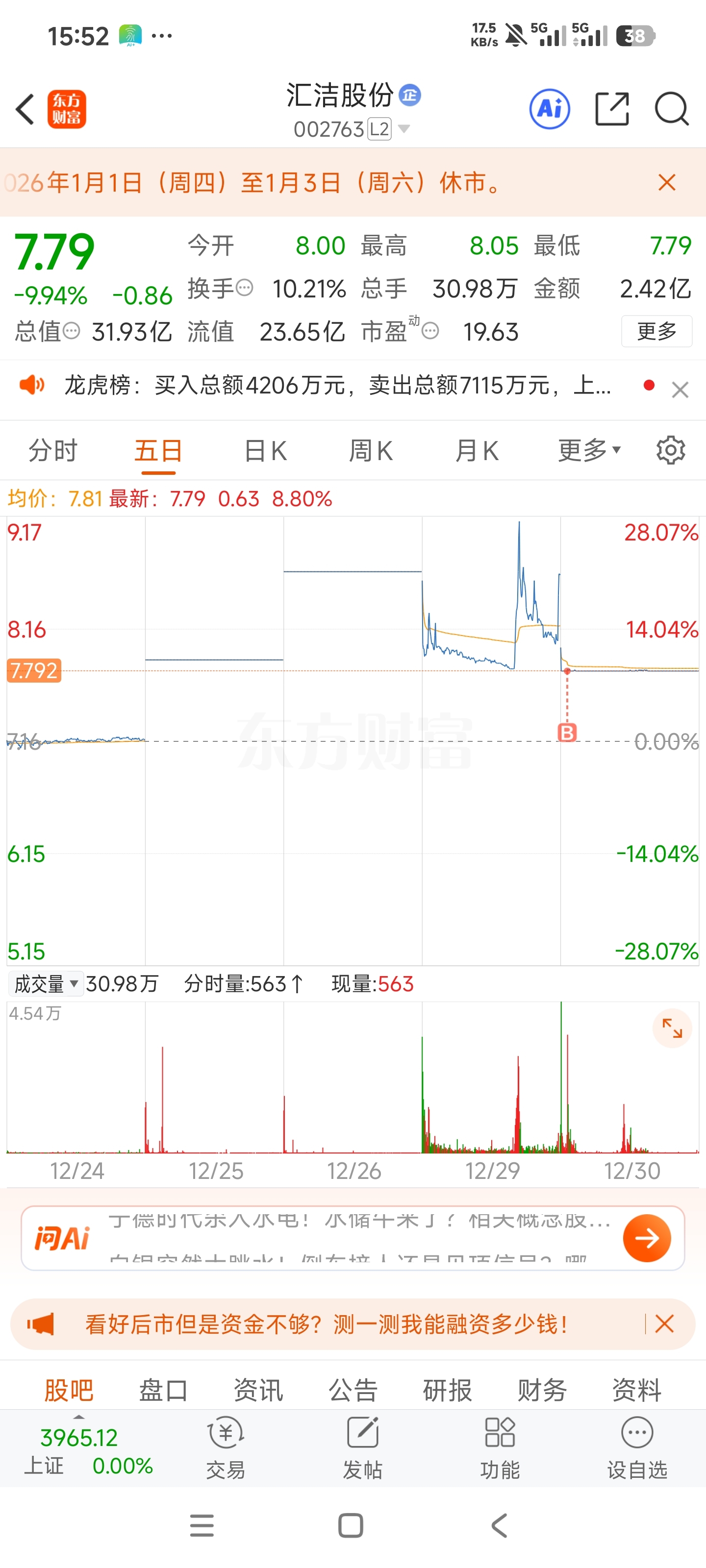 $汇洁股份(SZ002763)$ 昨天进去的资金今天怎么不拉一下呢