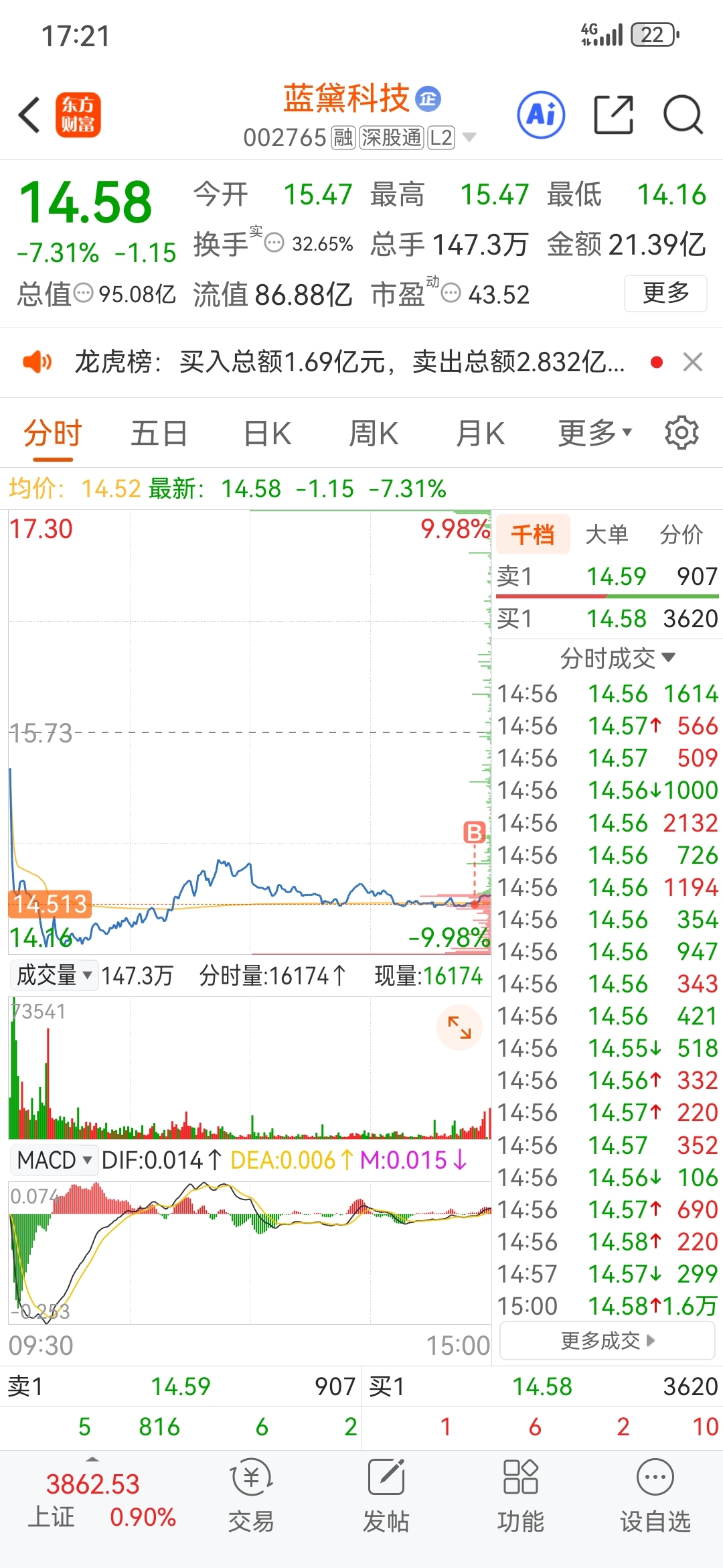 $蓝黛科技(SZ002765)$ 家人们,明天能活吗