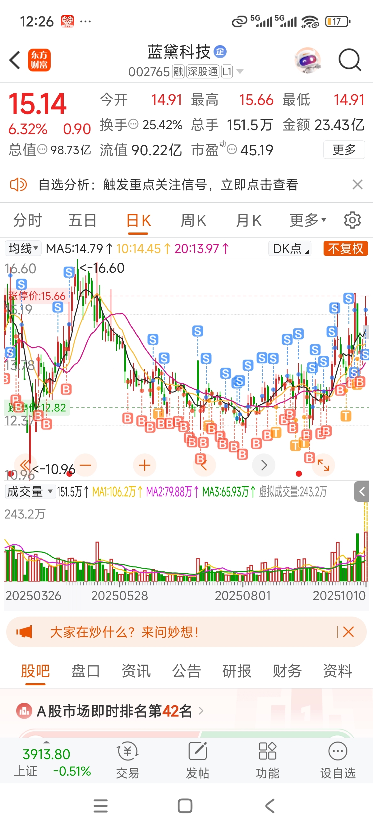 $蓝黛科技(SZ002765)$ 根本看不到成本线,因为我的成本已经来到一块钱了