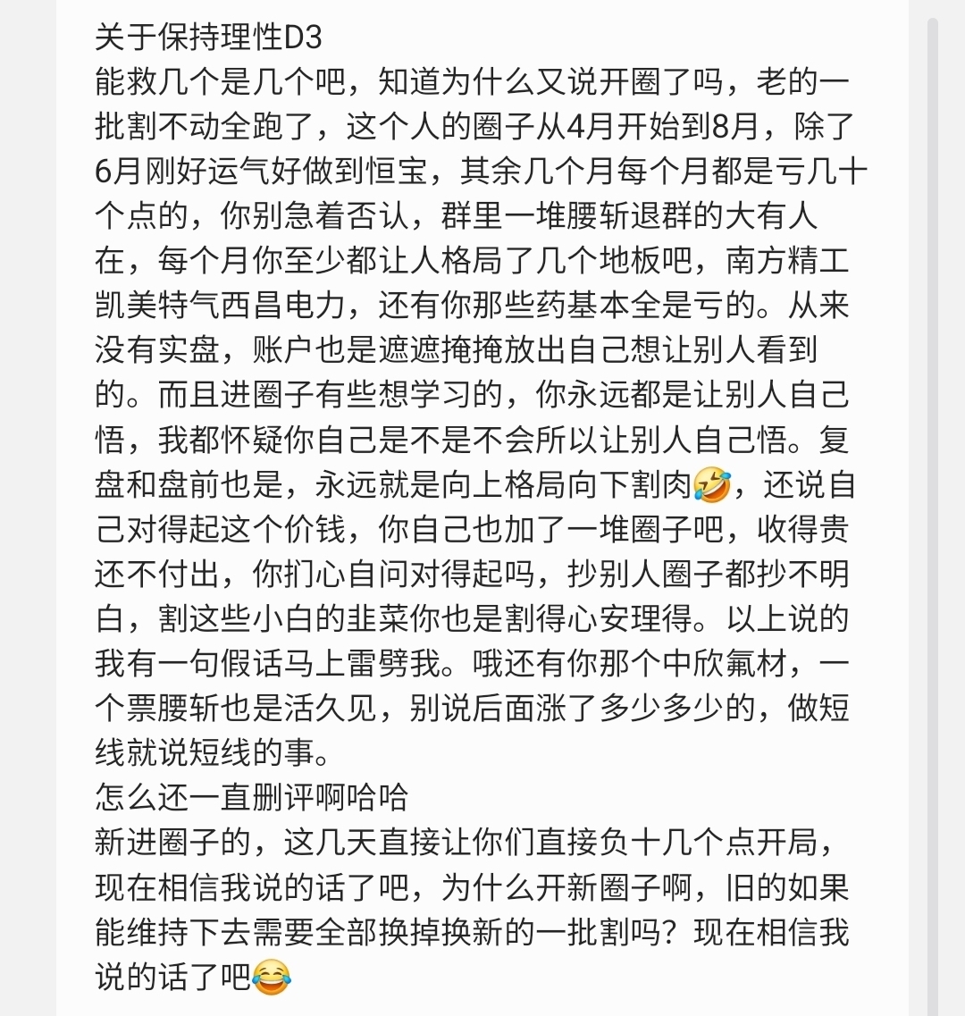 温馨提示: 1.根据《证券法》规定,禁止编造、传播虚假信息或者误导性信息,扰乱证券市场;2.用户在本社区发表的所有资料、言论等仅代表个人观点,与本网站立场无关,不对您构成任何投资建议。用户应基于自己的独立判断,自行决定证券投资并承担相应风险。《东方财富社区管理规定》