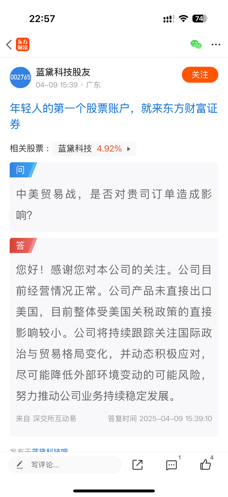 $蓝黛科技(SZ002765)$ 这票炒的是国产赛力斯供应链机器人,华为机器人!董秘也说了贸易战没有影响,公司没有产品出口美国。明天跟游资机构一起抱团炒!