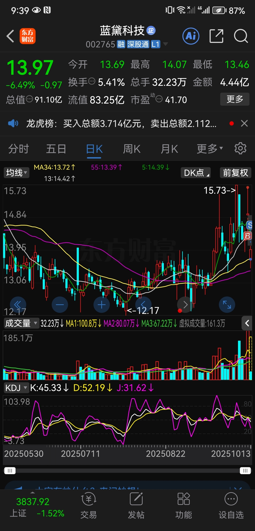 $蓝黛科技(SZ002765)$ 这主力也是绝了,杀敌一百自损八千,不及预期撤