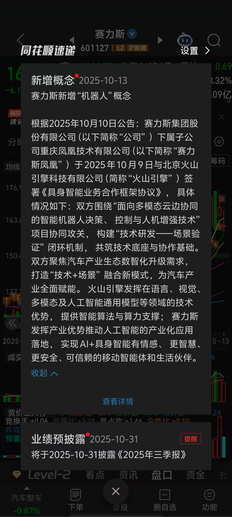 赛力斯新增“机器人”概念。叠加今天赛力斯港股上市通过!