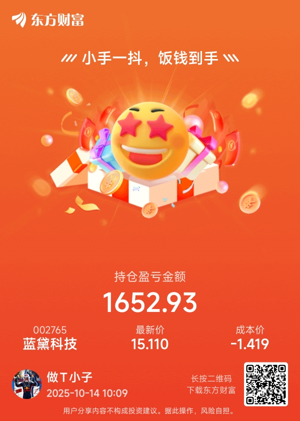 太爽了,太爽了,两个月之前还亏四五百就扣两三百股,一直不断t,终于成本来到了负数