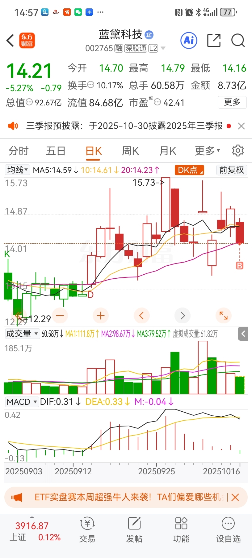 $蓝黛科技(SZ002765)$ 有种明天继续割我呀
