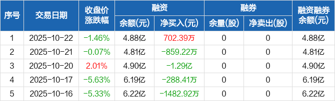 蓝黛科技:融资净买入702.39万元,融资余额4.88亿元(10-22)