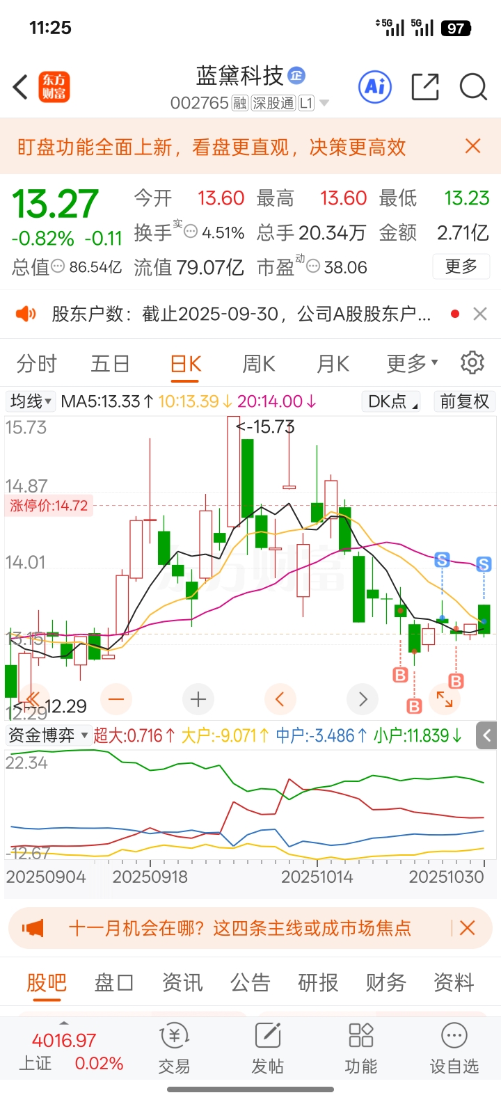 $蓝黛科技(SZ002765)$ 没法子了