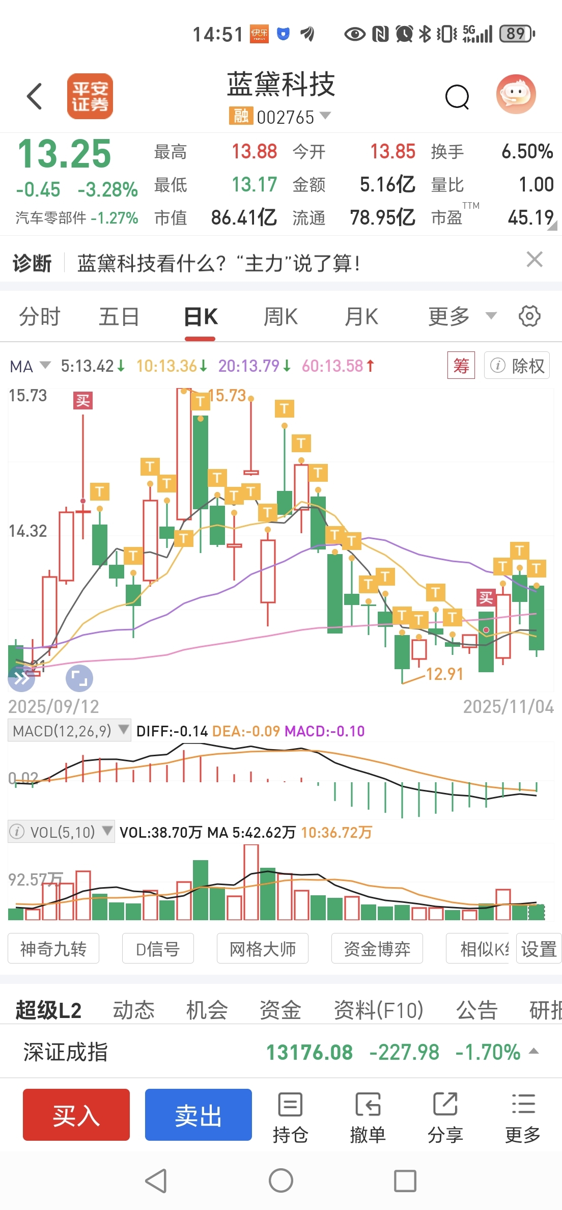 $蓝黛科技(SZ002765)$ 一阴破4线,牛