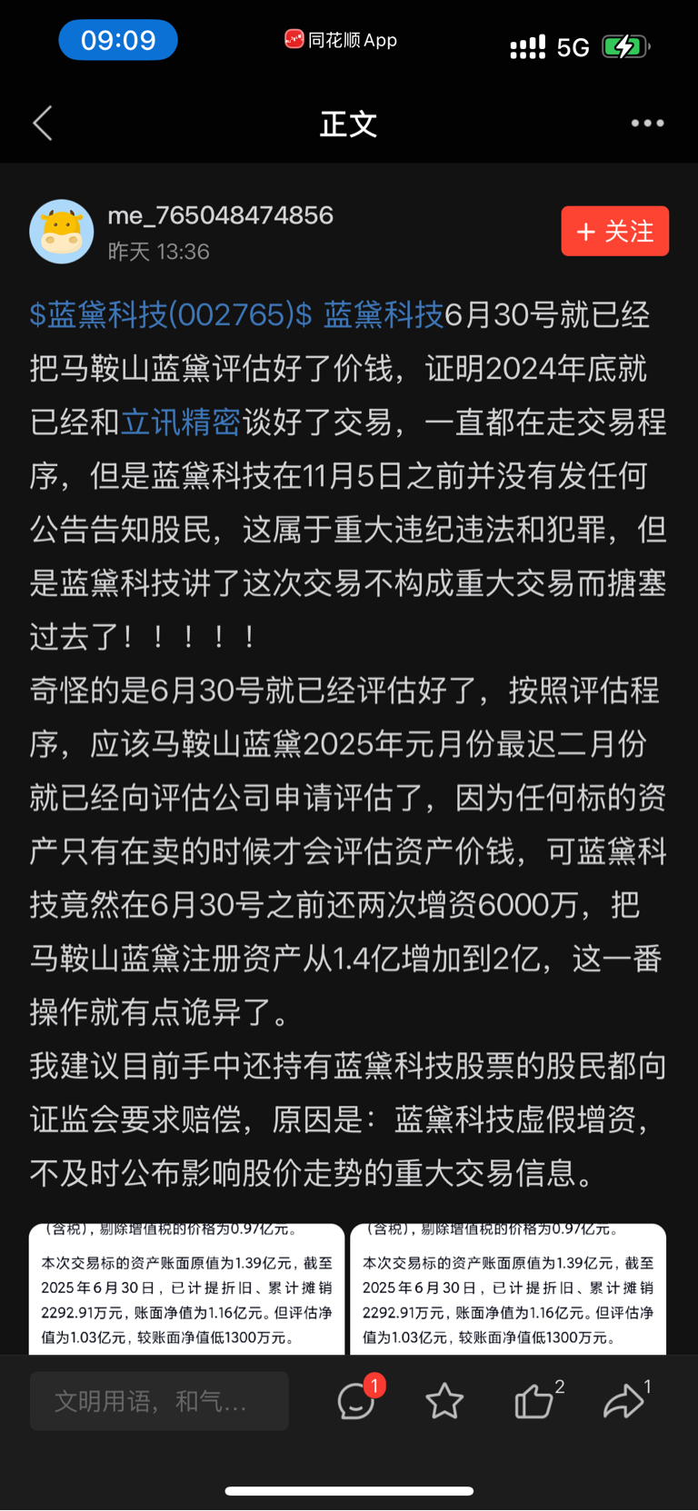 $蓝黛科技(SZ002765)$ 某顺有股民对懒怠迷之操作已经提出合理质疑并考虑实名举报了。并且这公司几年前有造假坑股民被证监会查处前科,大家看看。进行监督。
