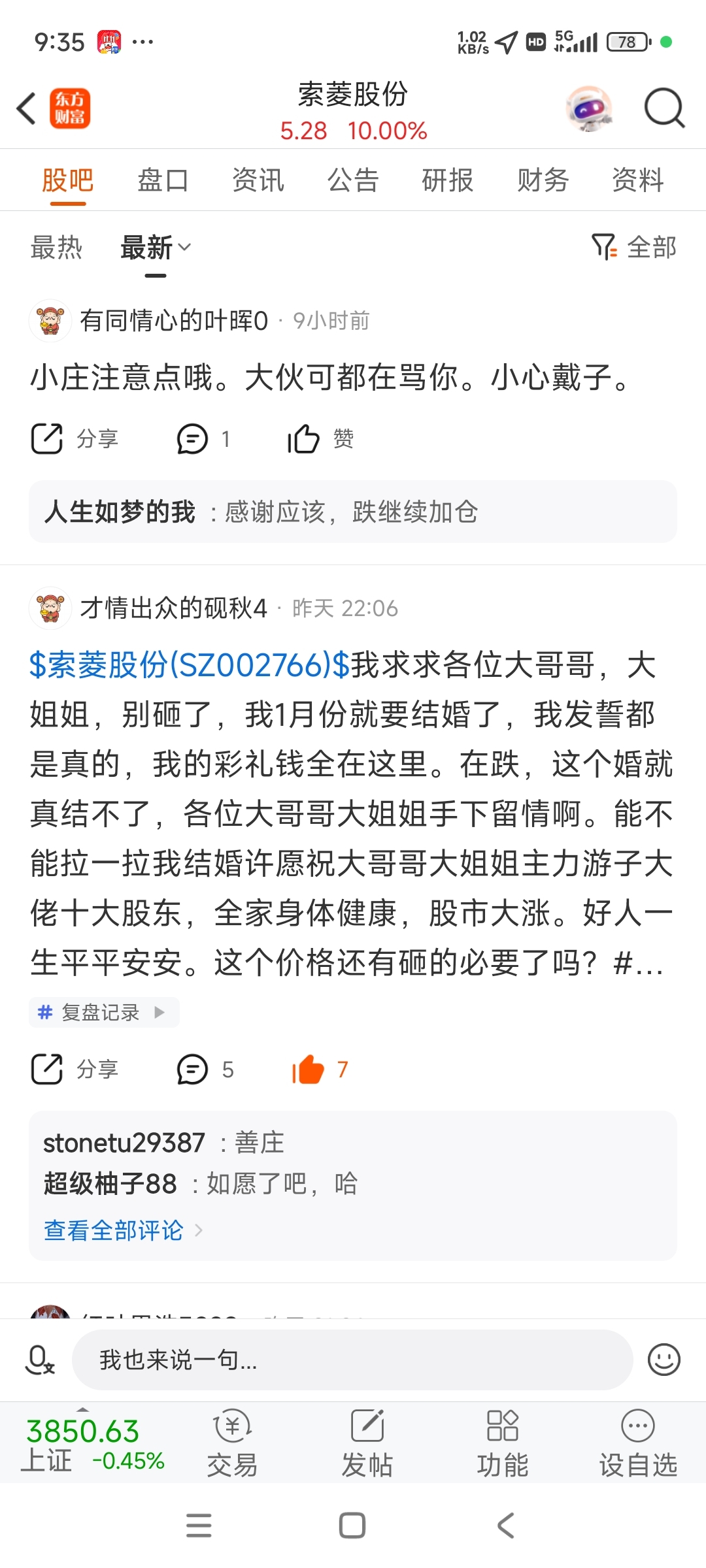 $索菱股份(SZ002766)$ 是不是昨天这位大概的彩礼惹的祸,我本来想在4.5附近低吸进来的,看来没有这个机会了