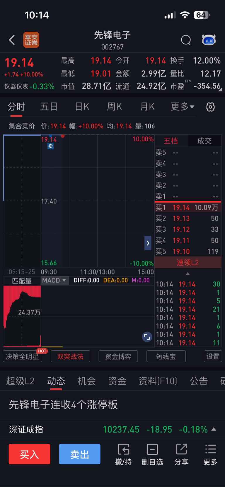 $先锋电子(SZ002767)$ 走了兄弟们,留下的发财