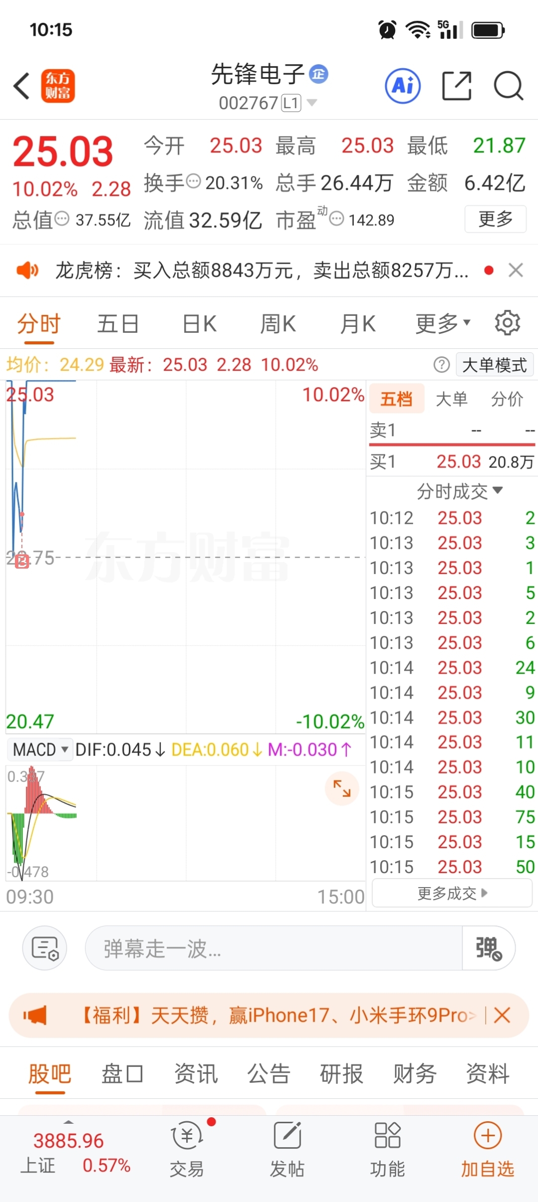 $先锋电子(SZ002767)$ 成功吃了涨停板 喜提一头牛