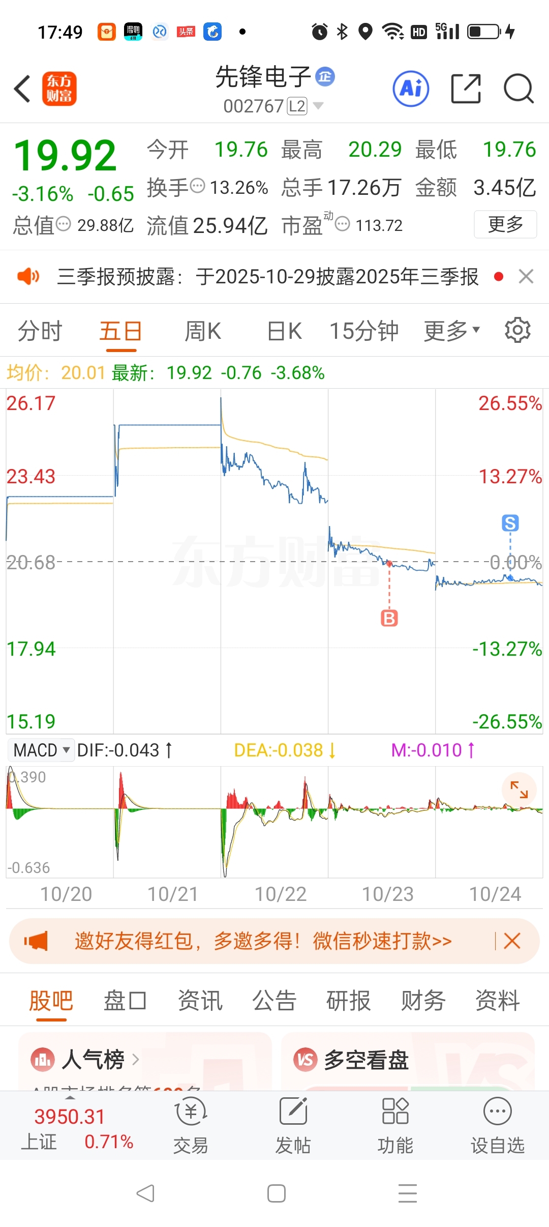 温馨提示: 1.根据《证券法》规定,禁止编造、传播虚假信息或者误导性信息,扰乱证券市场;2.用户在本社区发表的所有资料、言论等仅代表个人观点,与本网站立场无关,不对您构成任何投资建议。用户应基于自己的独立判断,自行决定证券投资并承担相应风险。《东方财富社区管理规定》