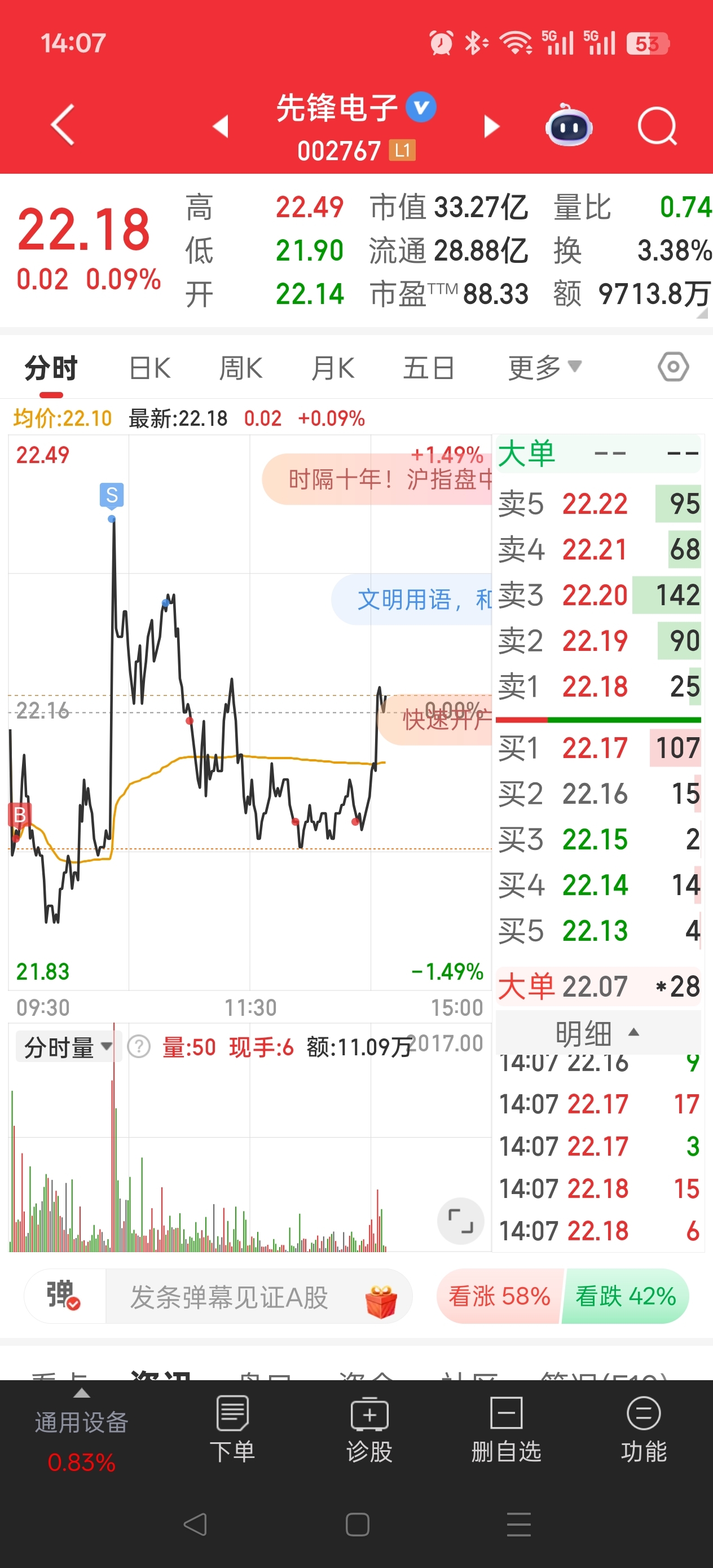 $先锋电子(SZ002767)$ 曼哥今天一直补,相信先锋不会失望的。