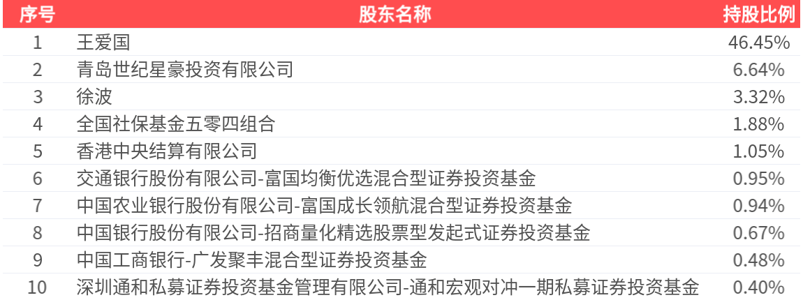 公司股东户数为1.92万户,前十大股东持股数量为1.70亿股,占总股本比例为62.79%,前十大股东持股情况如下: