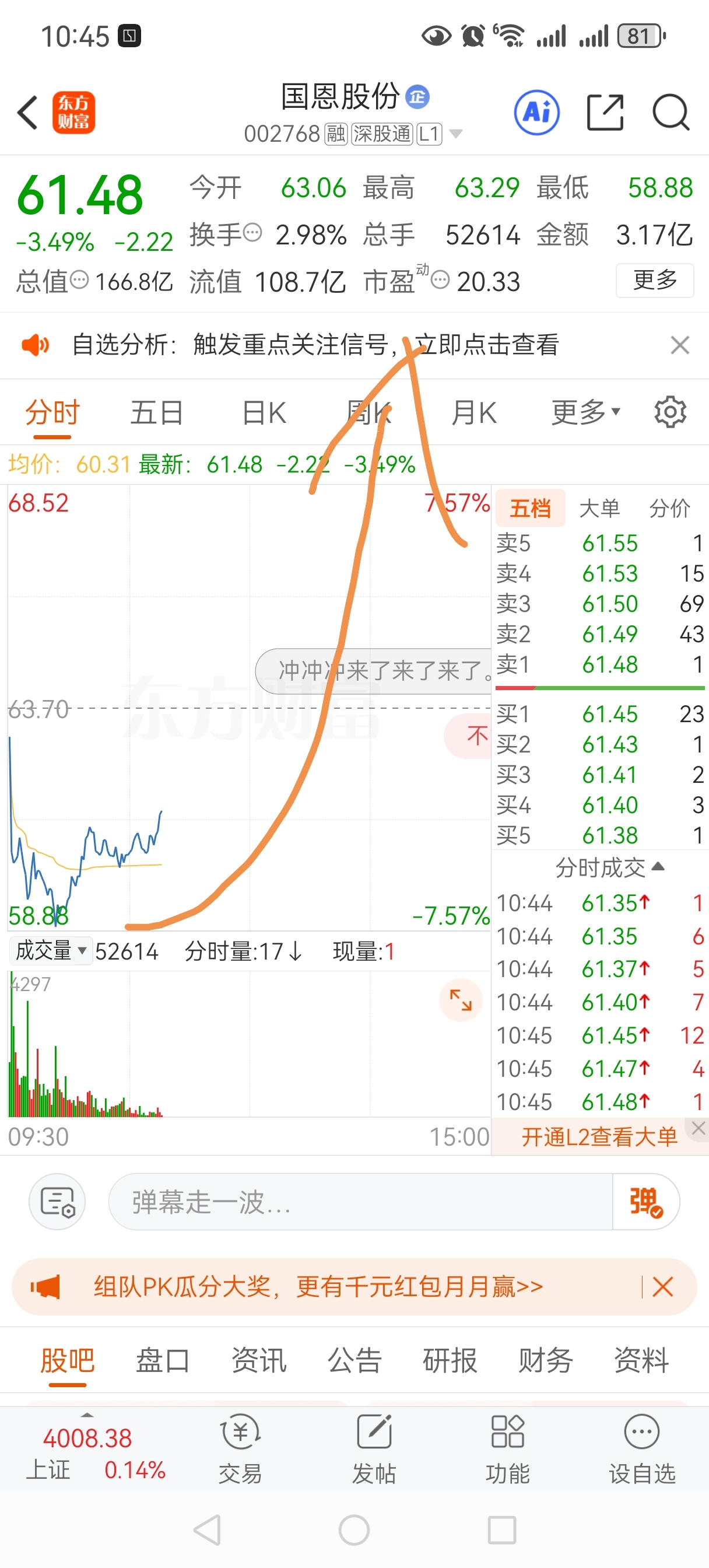 $国恩股份(SZ002768)$ 今天收红盘涨三个点以上。