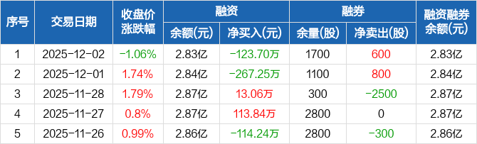 国恩股份:融资净偿还123.7万元,融资余额2.83亿元(12-02)