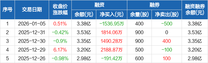 国恩股份:融资净偿还1536.95万元,融资余额3.38亿元(01-05)