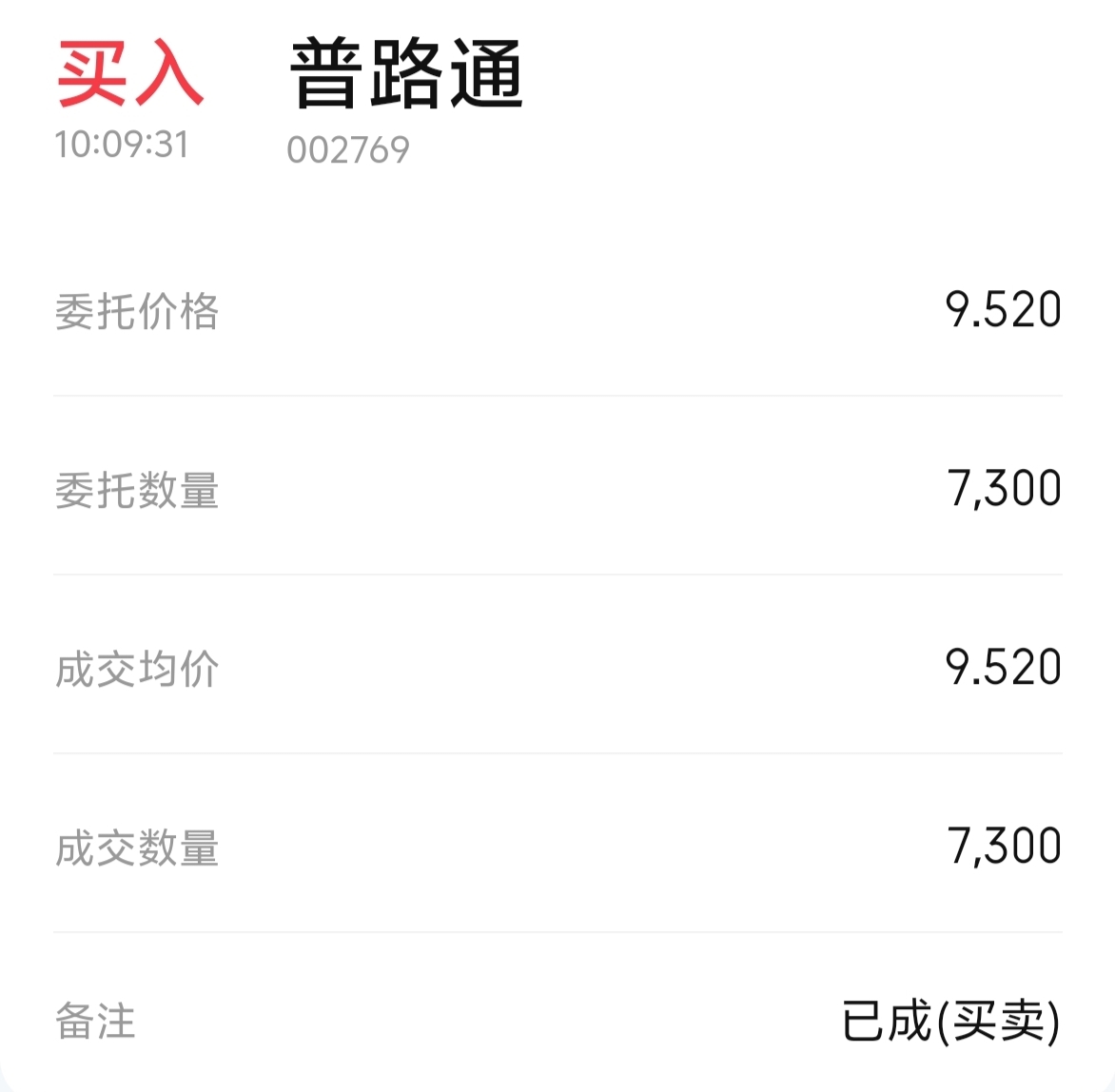 $普路通(SZ002769)$ 今日9.13建仓小普