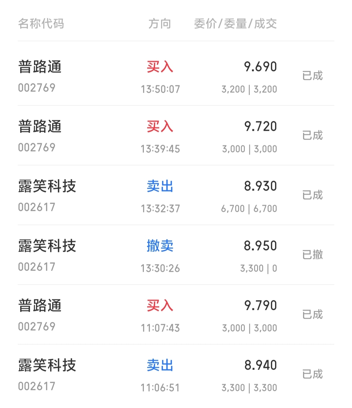 $普路通(SZ002769)$ 今天止盈露笑,继续加仓小普