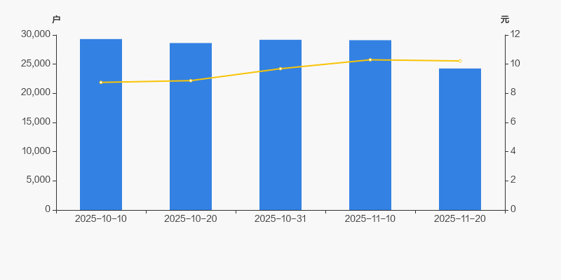 2025年10月10日至今,公司股东户数显著下降,区间跌幅为17.22%。2025年10月10日至2025年11月20日区间股价上涨16.80%。