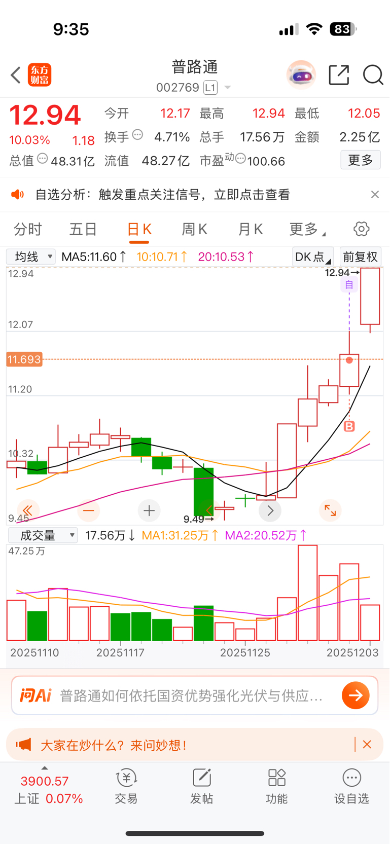 $普路通(SZ002769)$ 昨天尾盘进了,喜提涨停