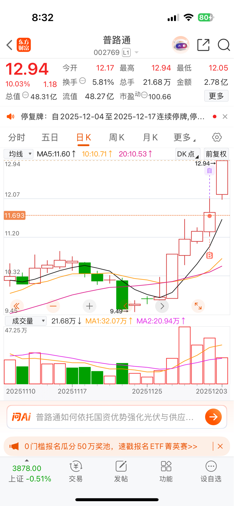 $普路通(SZ002769)$ 刚从辰安科技停牌出来,这个又给我停牌,这是诚心不让我玩?十个交易日