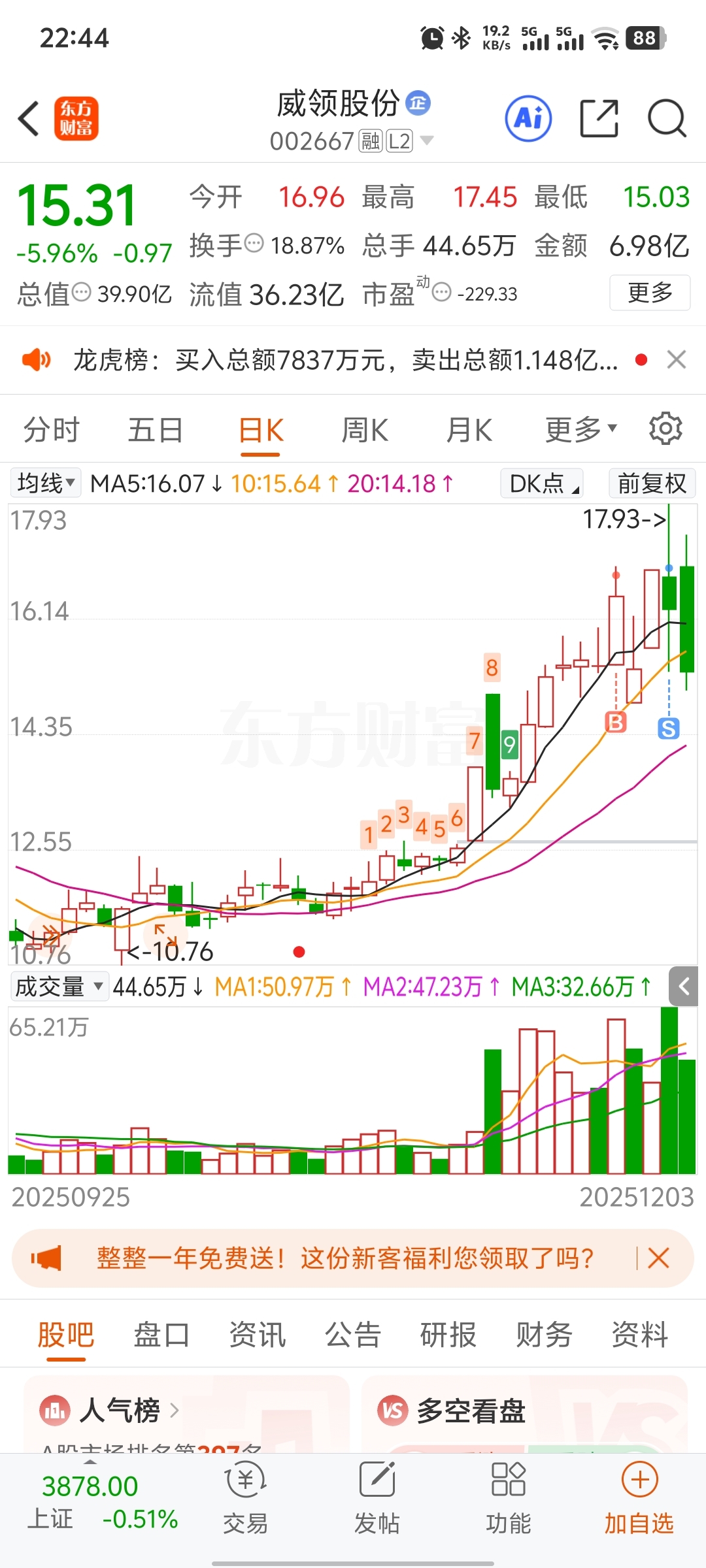 上月底买的威领股份昨天开盘不及预期保本出了,希望你不要让我失望