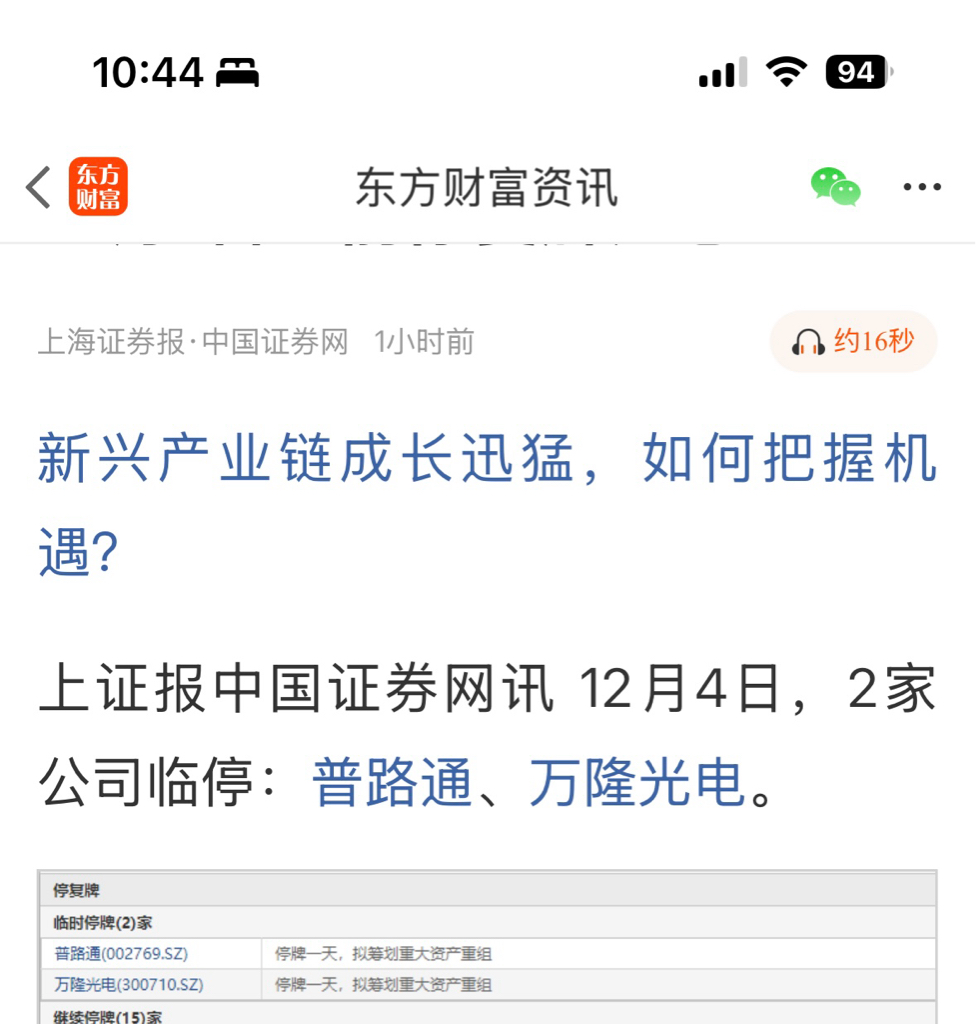$普路通(SZ002769)$ 这明显好事情啊,发展新兴行业,临时筹划重组,只停牌一天目前