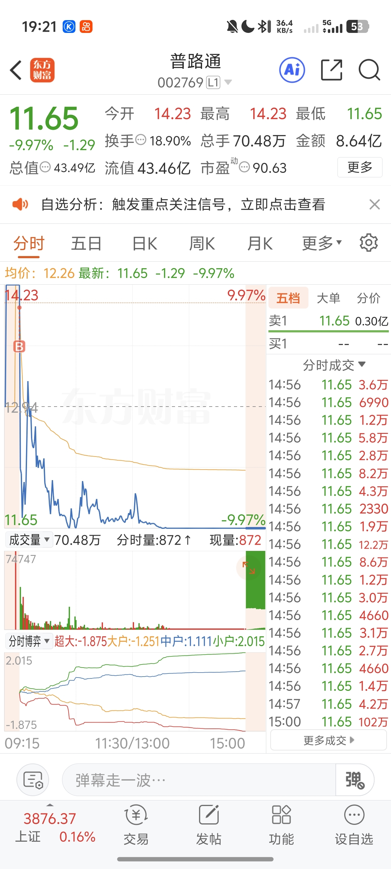 $普路通(SZ002769)$ 明天怎么办,吃大面了