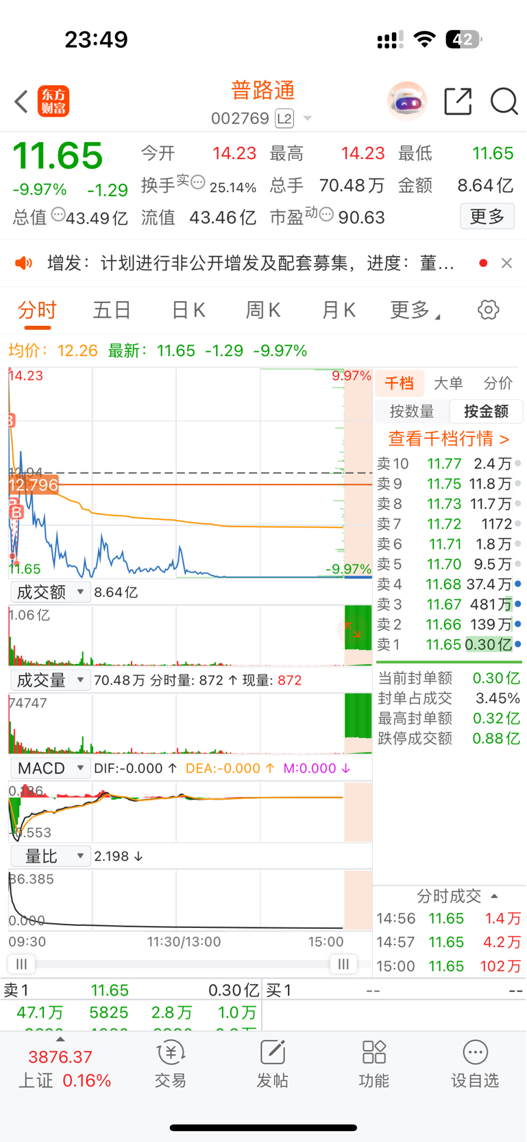 $普路通(SZ002769)$ 好兄弟 一起走 有难一起扛 跌停板也是板 板上钉钉