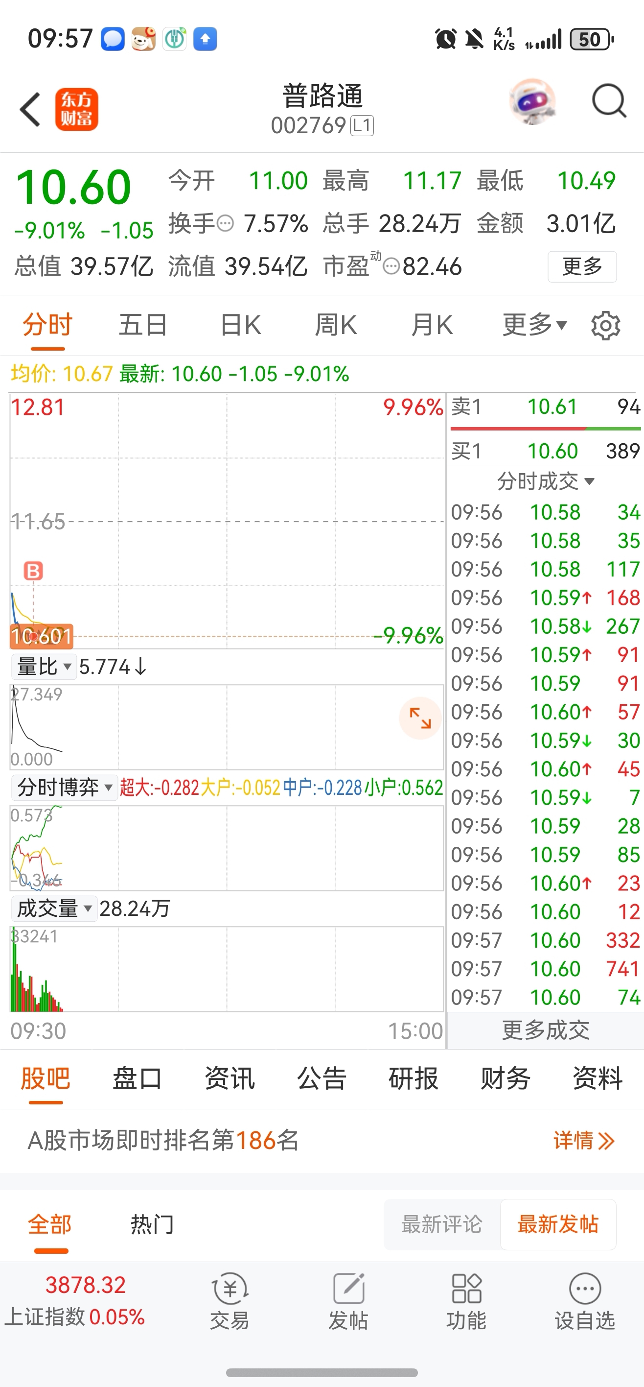 再发一条,所有人都看空,那他为何不跌停?我海峡昨天刚走。今天冲普路通