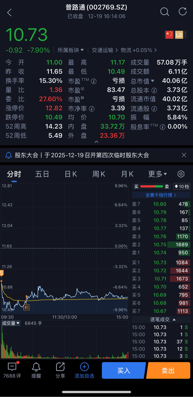 $普路通(SZ002769)$ 认亏出局,等你企稳我在回来拿回属于我的。
