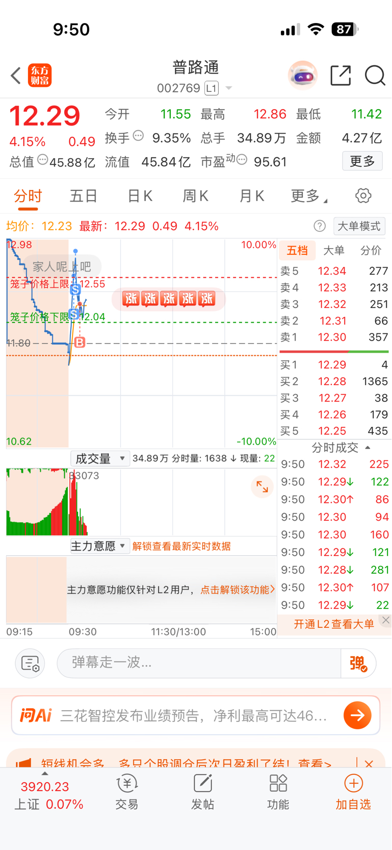 $普路通(SZ002769)$ 硬抗三个跌停,现在终于收益红了
