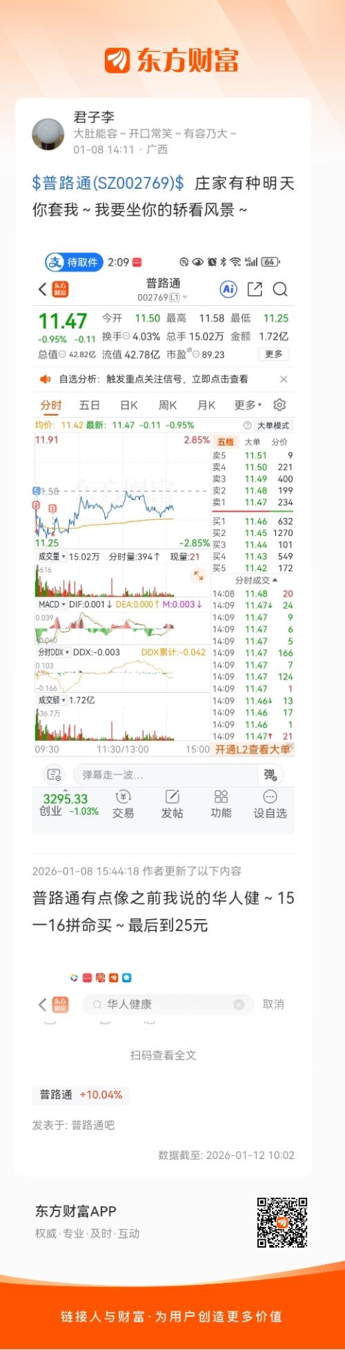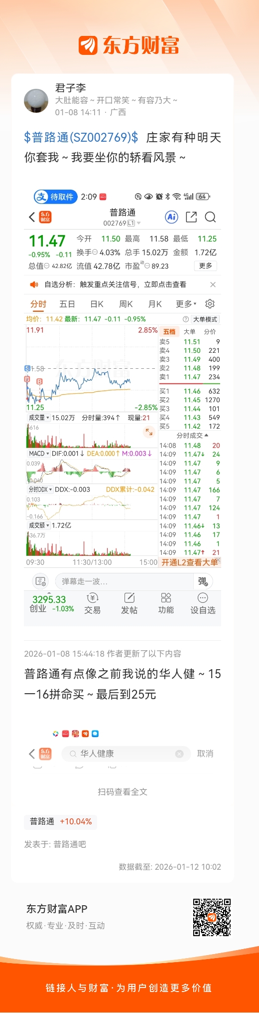 $普路通(SZ002769)$  庄家有种明天你套我~我要坐你的轿看风景~