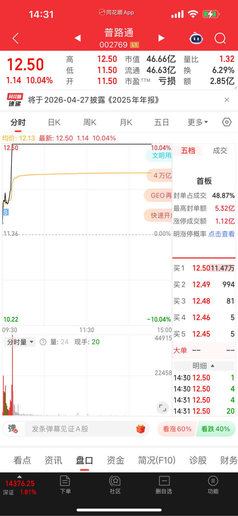 $普路通(SZ002769)$ 痛啊,主力大哥,我应该信你的