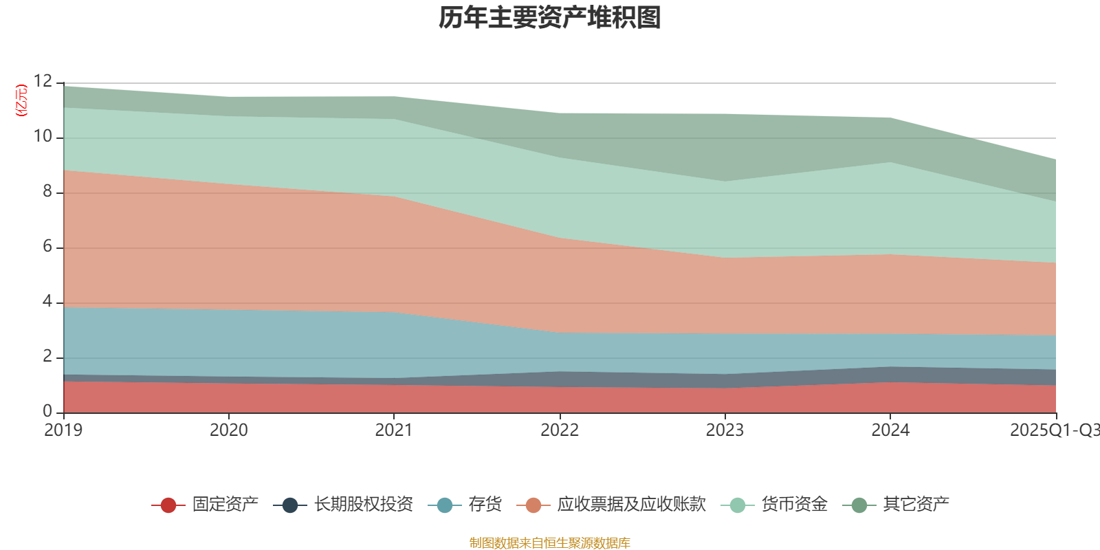 资产重大变化方面,截至2025年三季度末,公司货币资金较上年末减少33.47%,占公司总资产比重下降7.03个百分点;存货较上年末增加4.14%,占公司总资产比重上升2.38个百分点;应收票据及应收账款较上年末减少8.7%,占公司总资产比重上升1.72个百分点;预付款项较上年末增加74.21%,占公司总资产比重上升1.51个百分点。