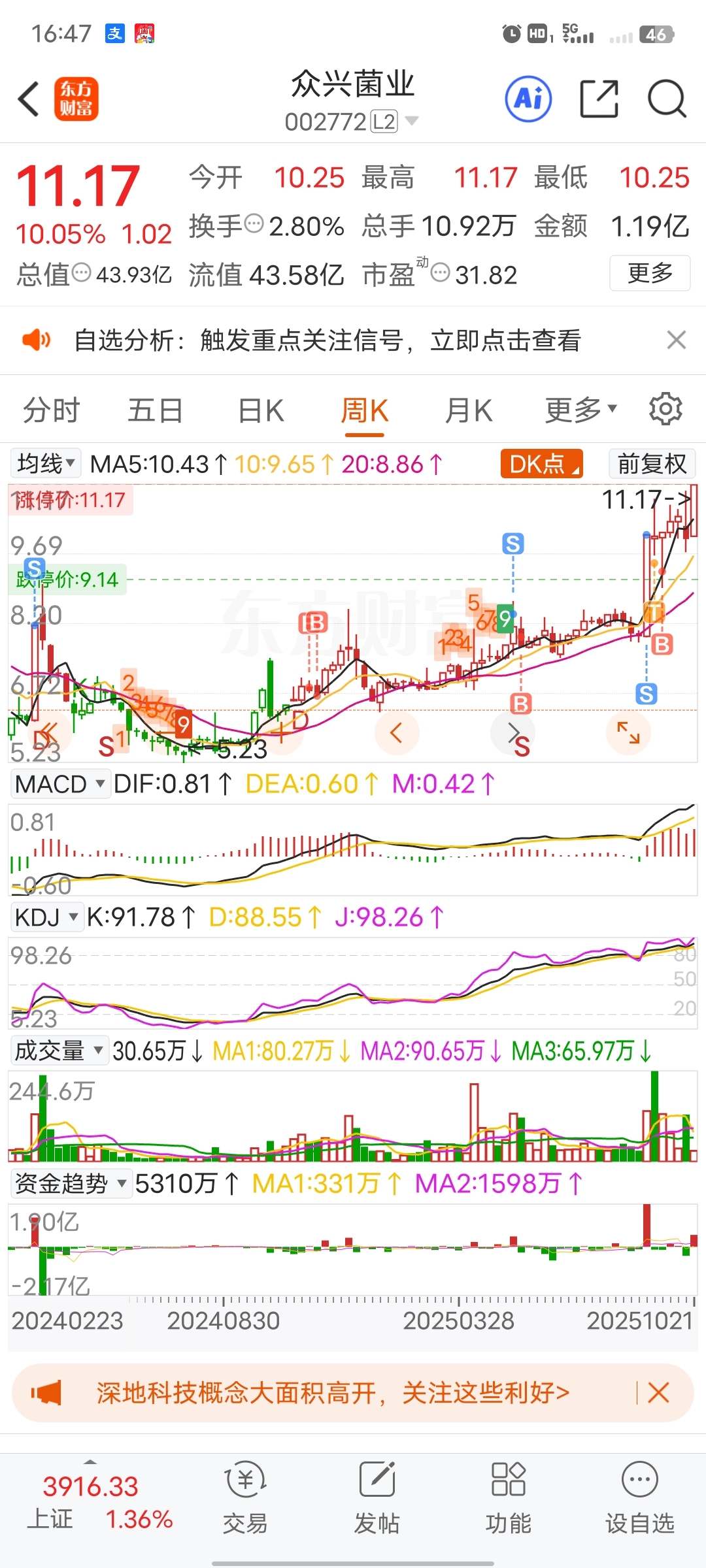 $众兴菌业(SZ002772)$ #强势机会# #炒股日记#