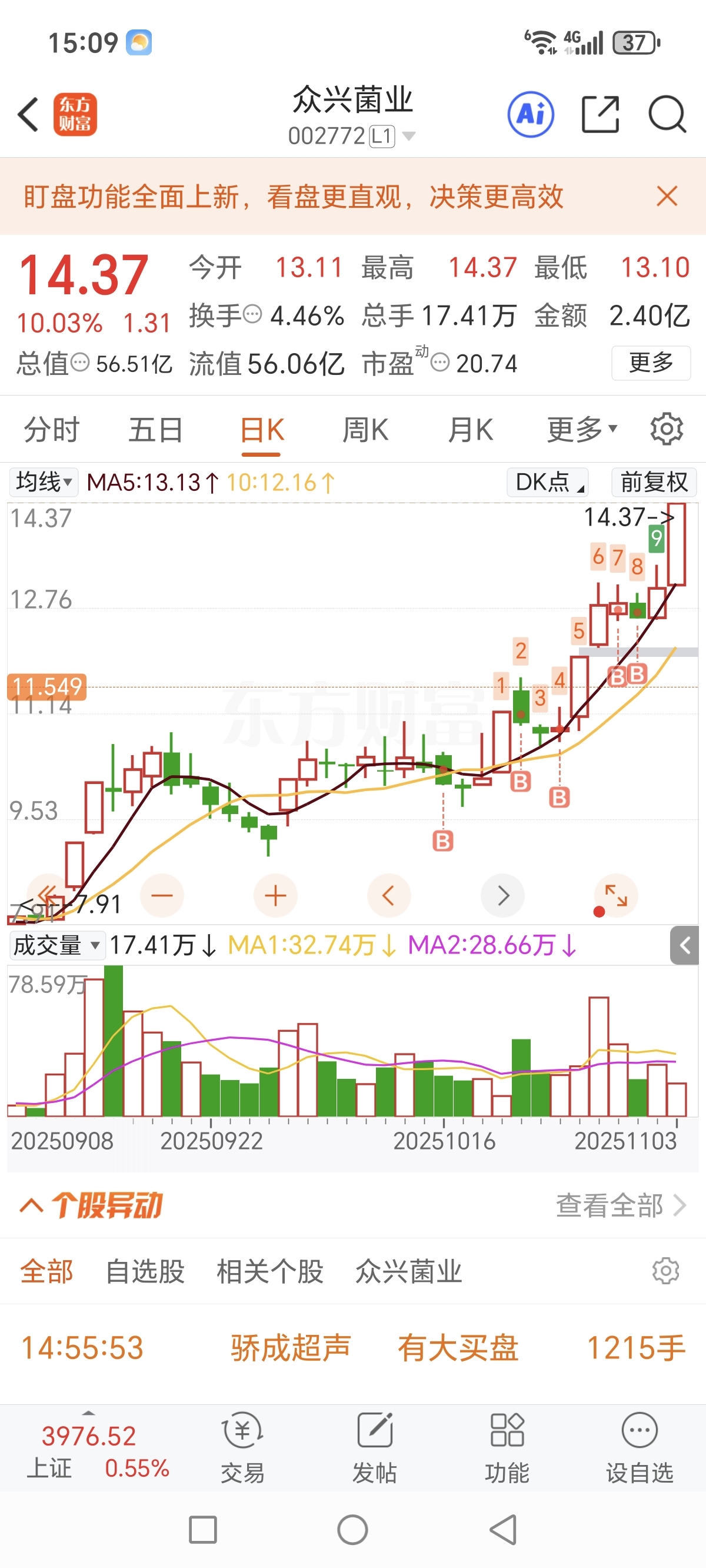$众兴菌业(SZ002772)$ 明天开盘就跑
