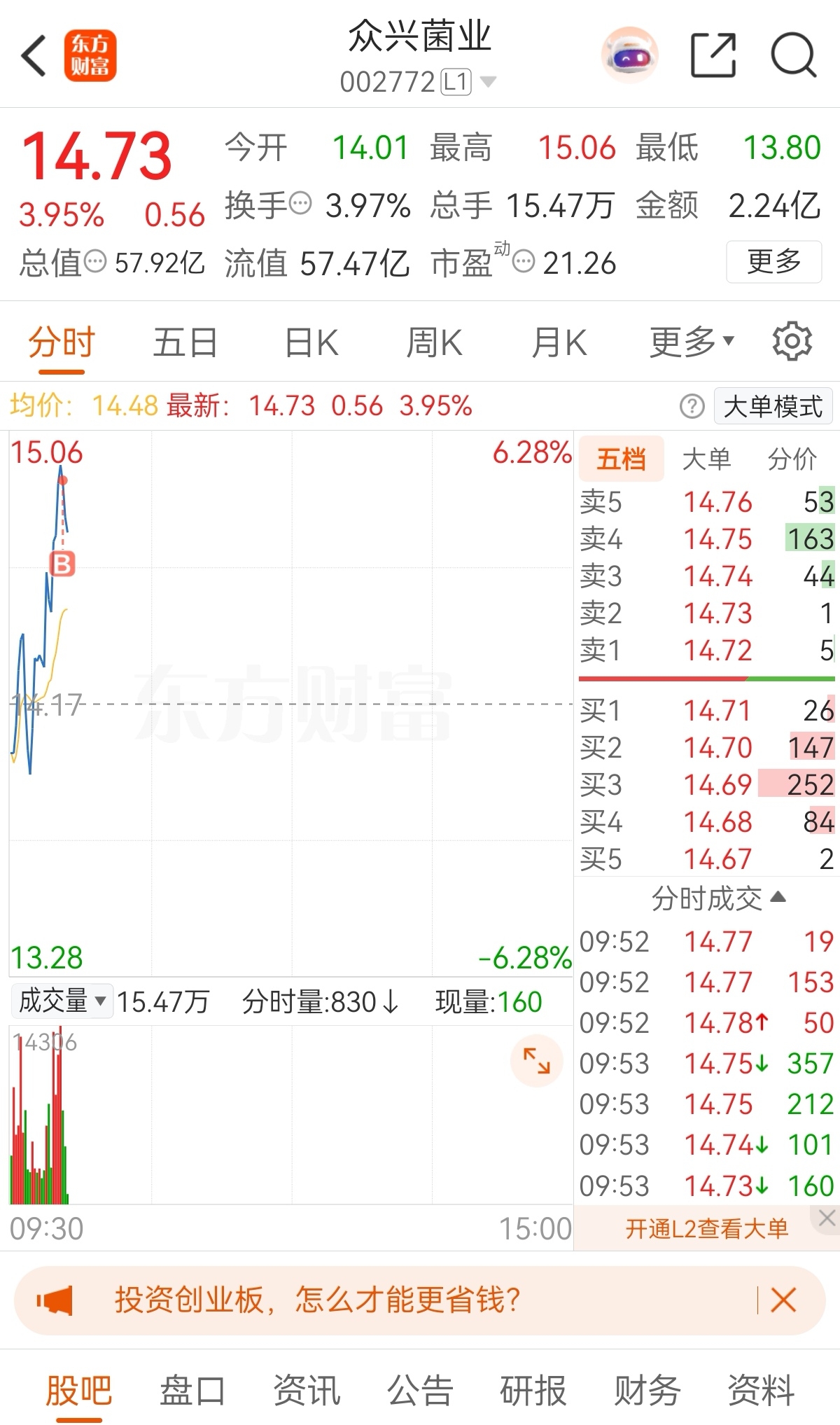 $众兴菌业(SZ002772)$ 兄弟们,我忍不住进来了,请记住我的买点,这将是众兴菌业未来五年的最高点了,这就是我,衰神附体,不要不信邪哦