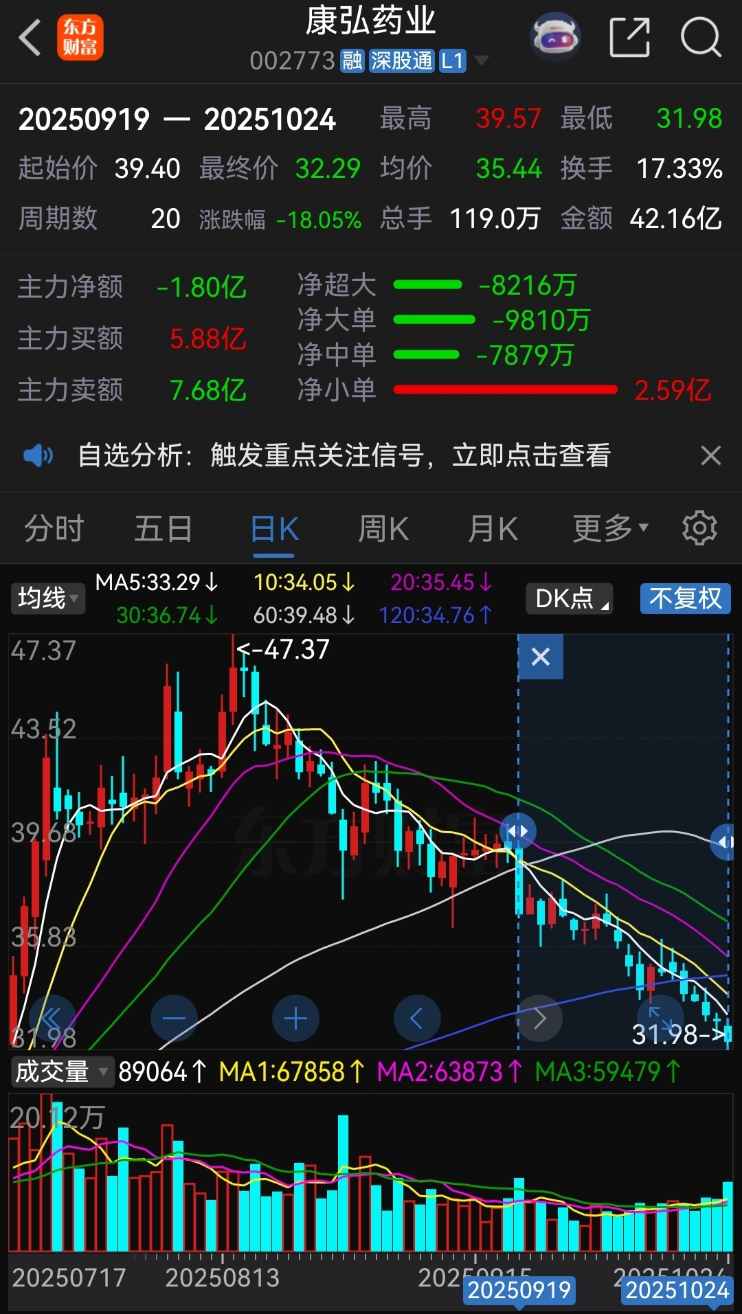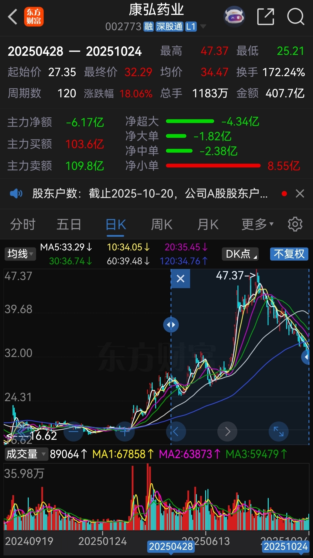 记得在8月份老鲨鱼曾预测过120天的支撑看是否有效,今天被被彻底破防不说,还击穿