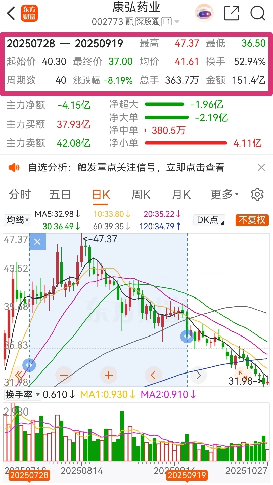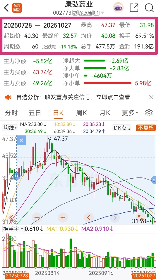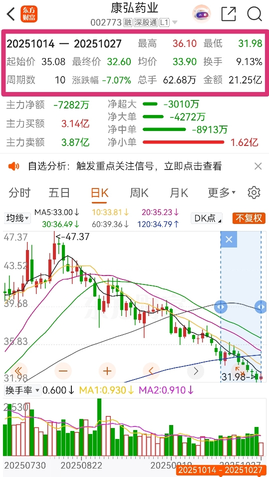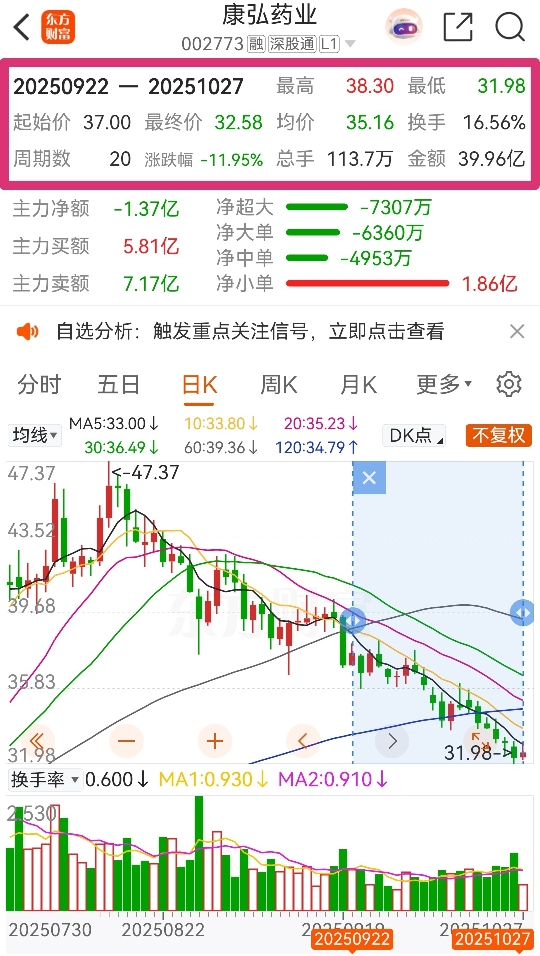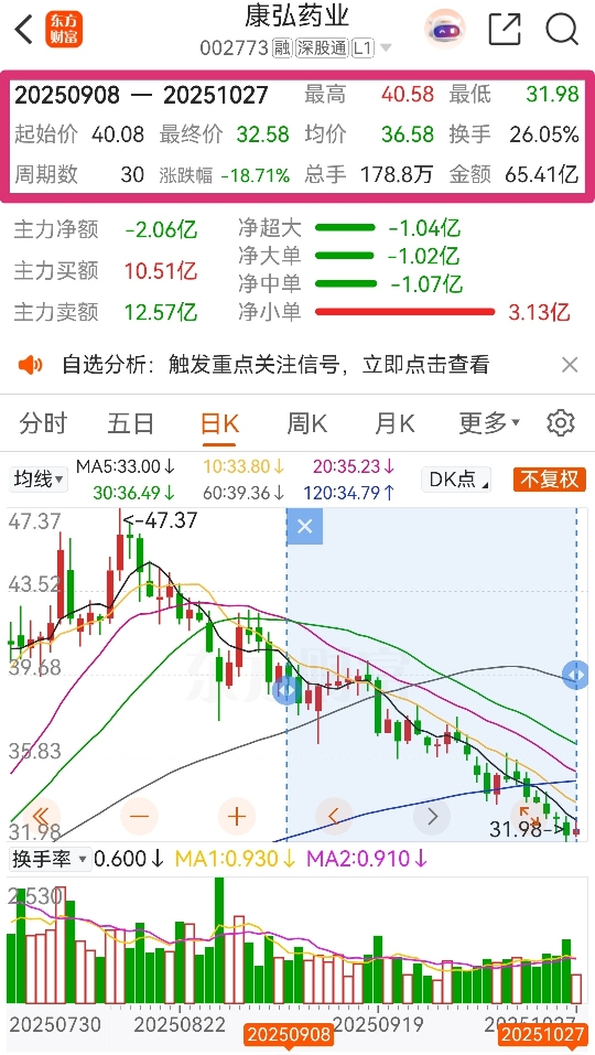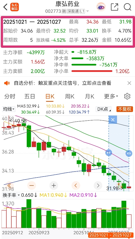 5个交易日的成交均价都为33.01元,换手才区区4.70%,她们乍个跑?乍跑的干净彻底!